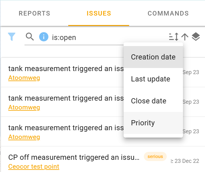 Issues can be triggered automatically by setting issue triggers. Issue triggers are defined by setting thresholds on the measurement values coming in. There are 3 urgency levels of issues: